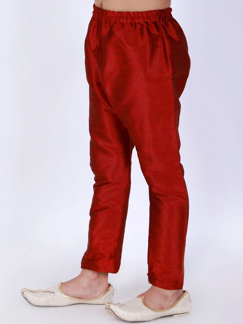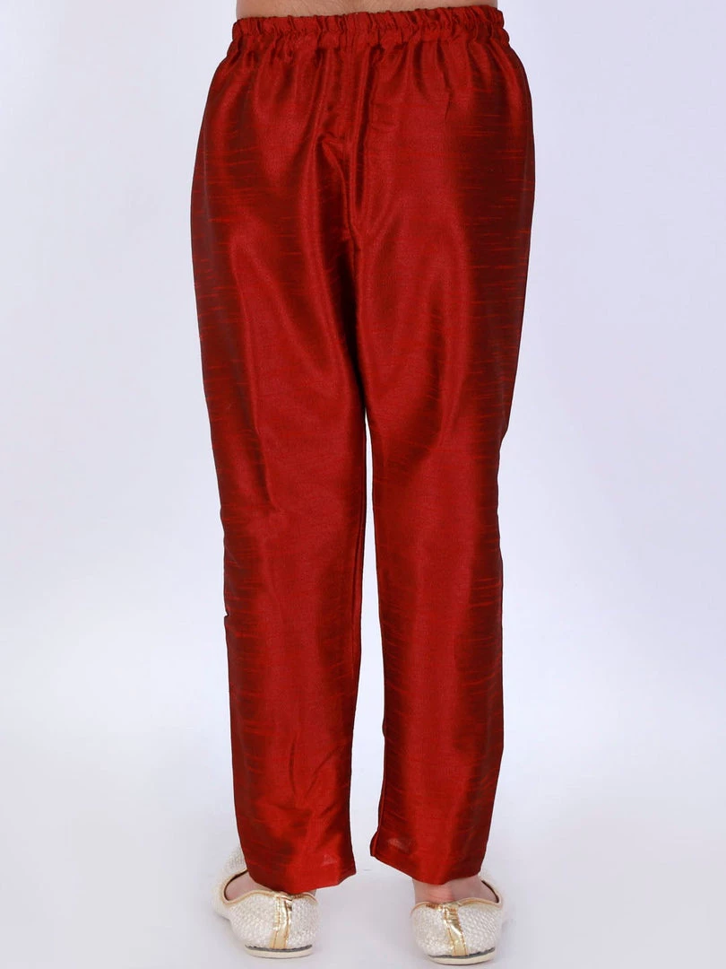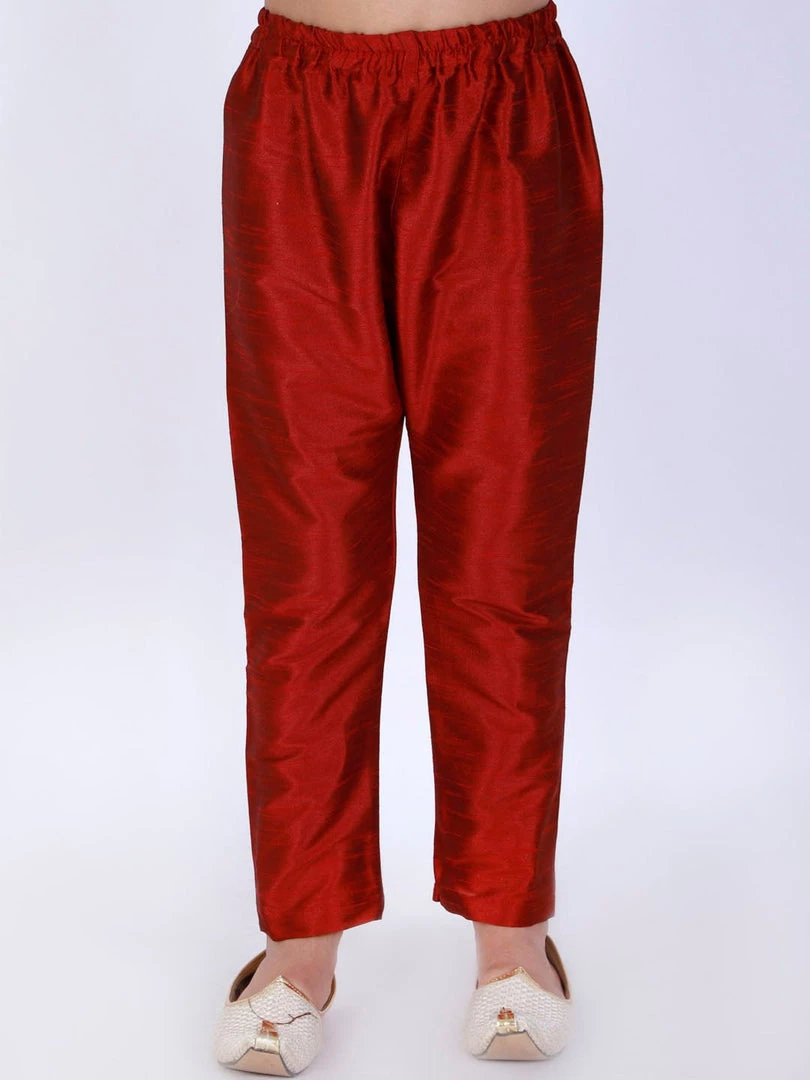 Maroon solid relaxed-fit silk ethnic pyjama, has an elasticated waistband and slip on closure