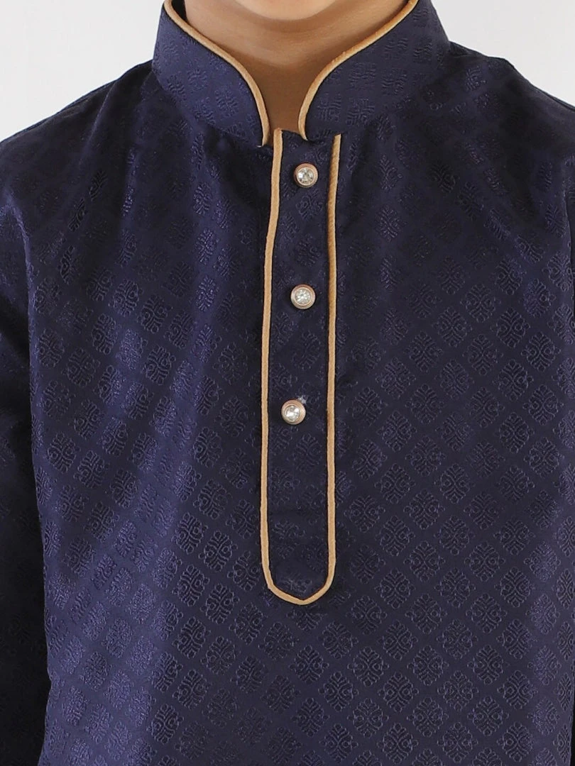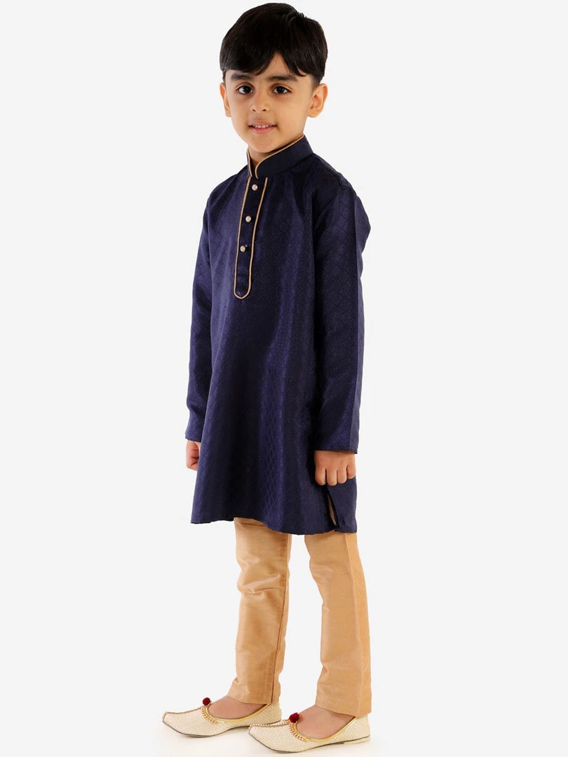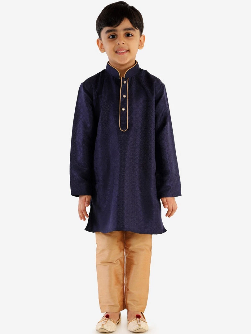 Celebrate your little one’s personal style and roots with this elegant navy blue kurta set from Vastramay.