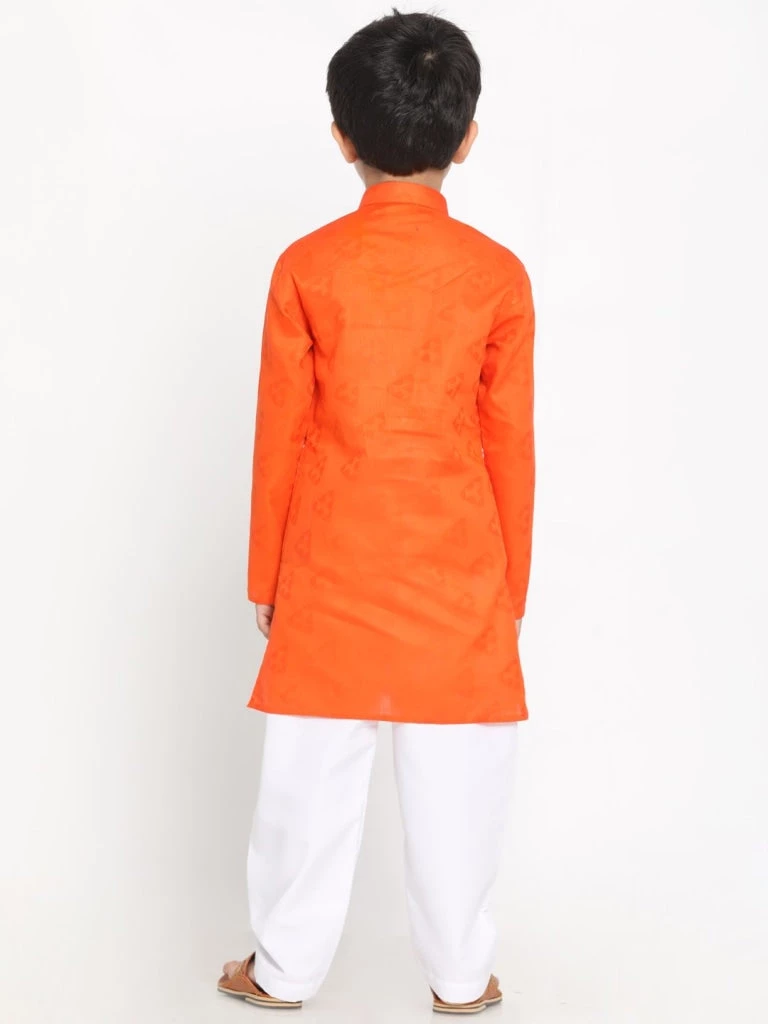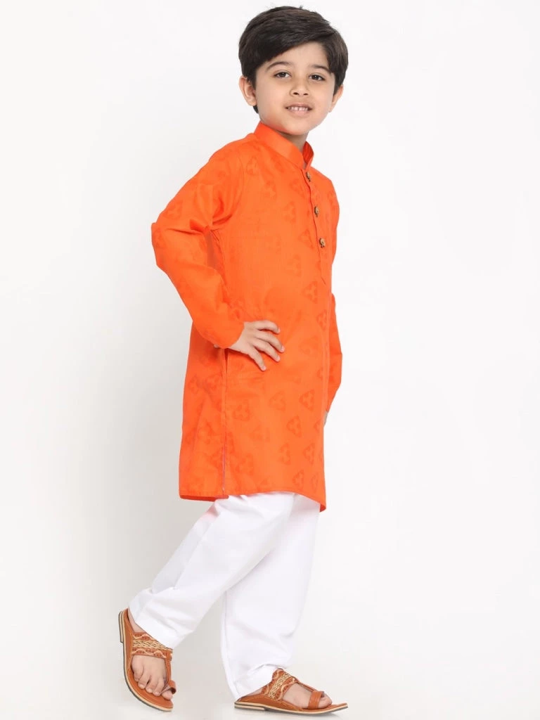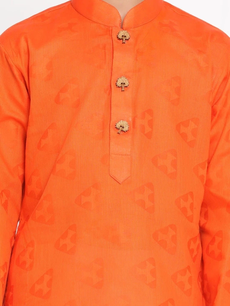 Showcase your little boy’s unique personal style in this orange kurta set.