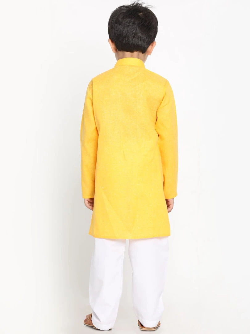 Yellow and white solid kurta with pyjama
