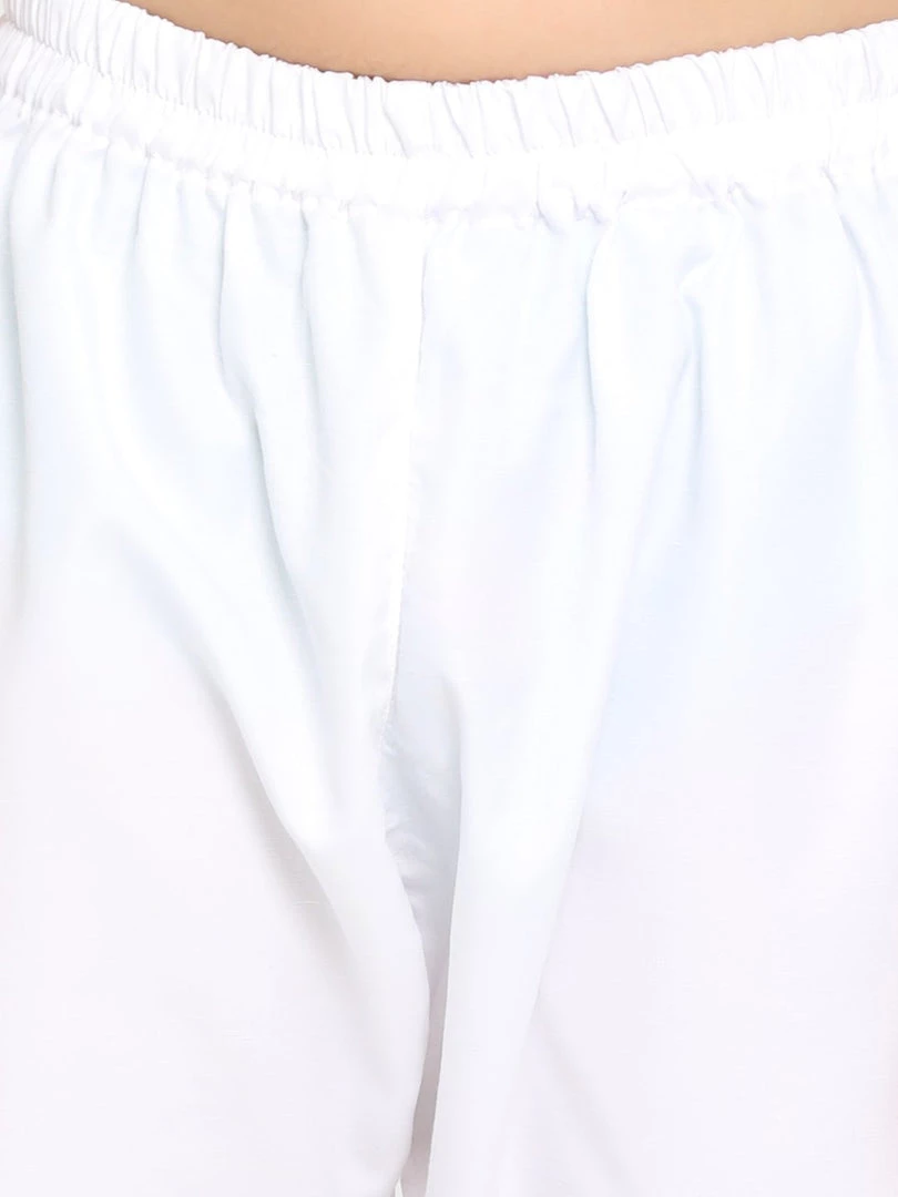 White Solid pyjama, has elasticated waistband, slip-on closure
