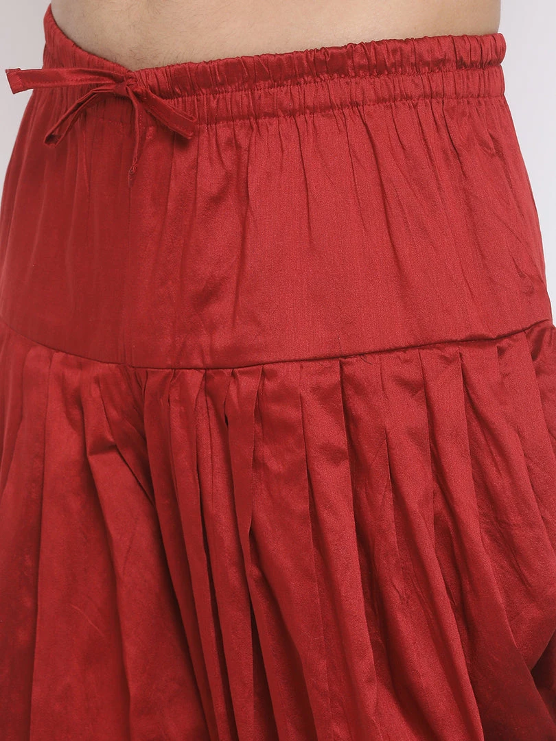 Maroon solid cowl dhoti pant, has elasticated waistband and drawstring closure