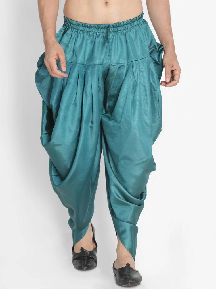Green solid dhoti pant with pleats forming cowl on sides, has an elasticated waistband with draw-string closure