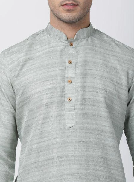 Light Green Woven straight knee-length kurta, has a mandarin collar, long sleeves, straight hem.