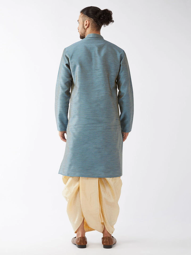 Aqua Blue and Gold woven kurta with Embroidered dhoti pant set
