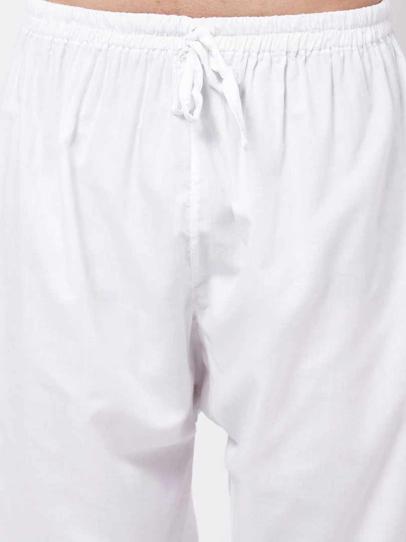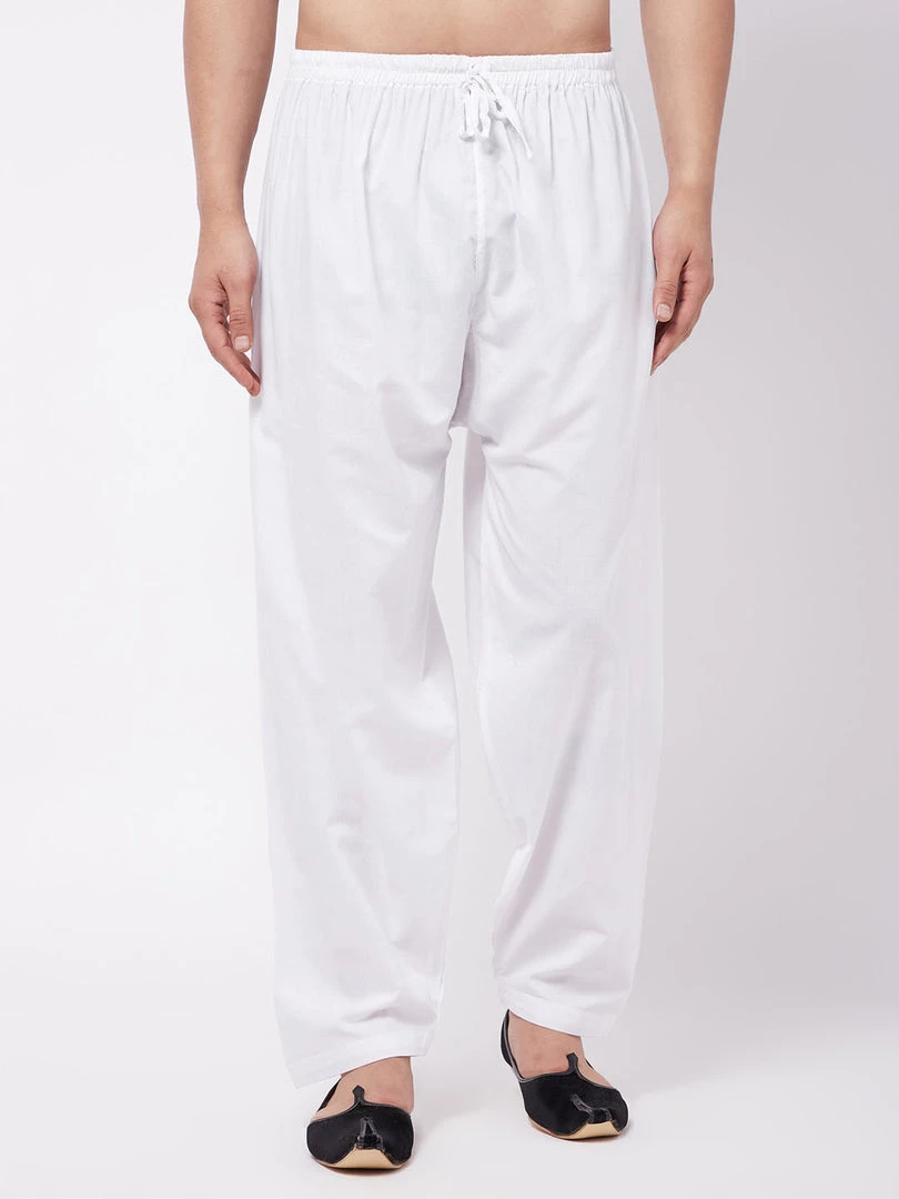 A pair of white solid Patiala pyjama, has an elasticated waistband and drawstring fastening