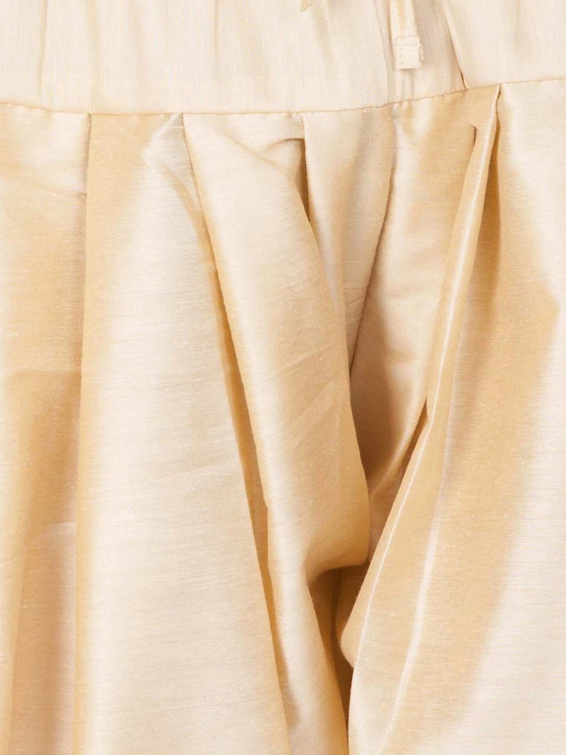 A pair of gold-coloured Jodhpuri pants has a drawstring closure