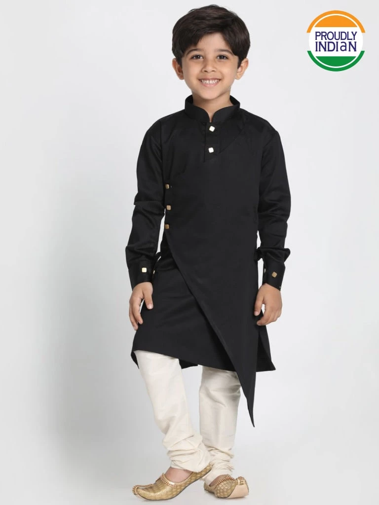 Black and cream-coloured indo western solid kurta with churidar