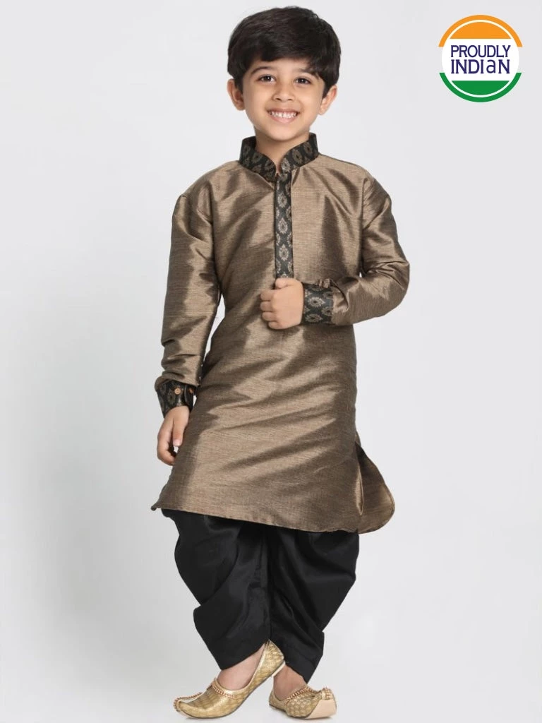 Let your little guy gain due attention with this kurta set. Help him style a good hairstyle to complete a well-groomed look.