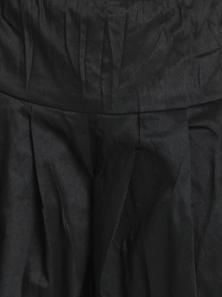 Black solid dhoti pant, has elasticated waistband, slip-on closure