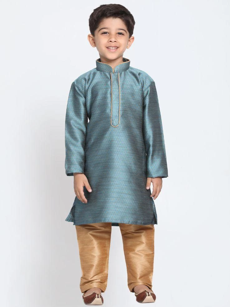 Blue and beige self-design kurta with pyjama