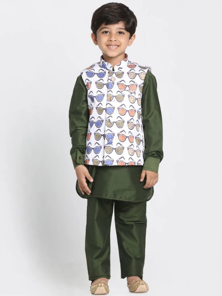Adorn your boy with this jacket by JBN Creation for a perfect classy & trendy look. Pair it with a juti or a mojari and look apart on special occasions.