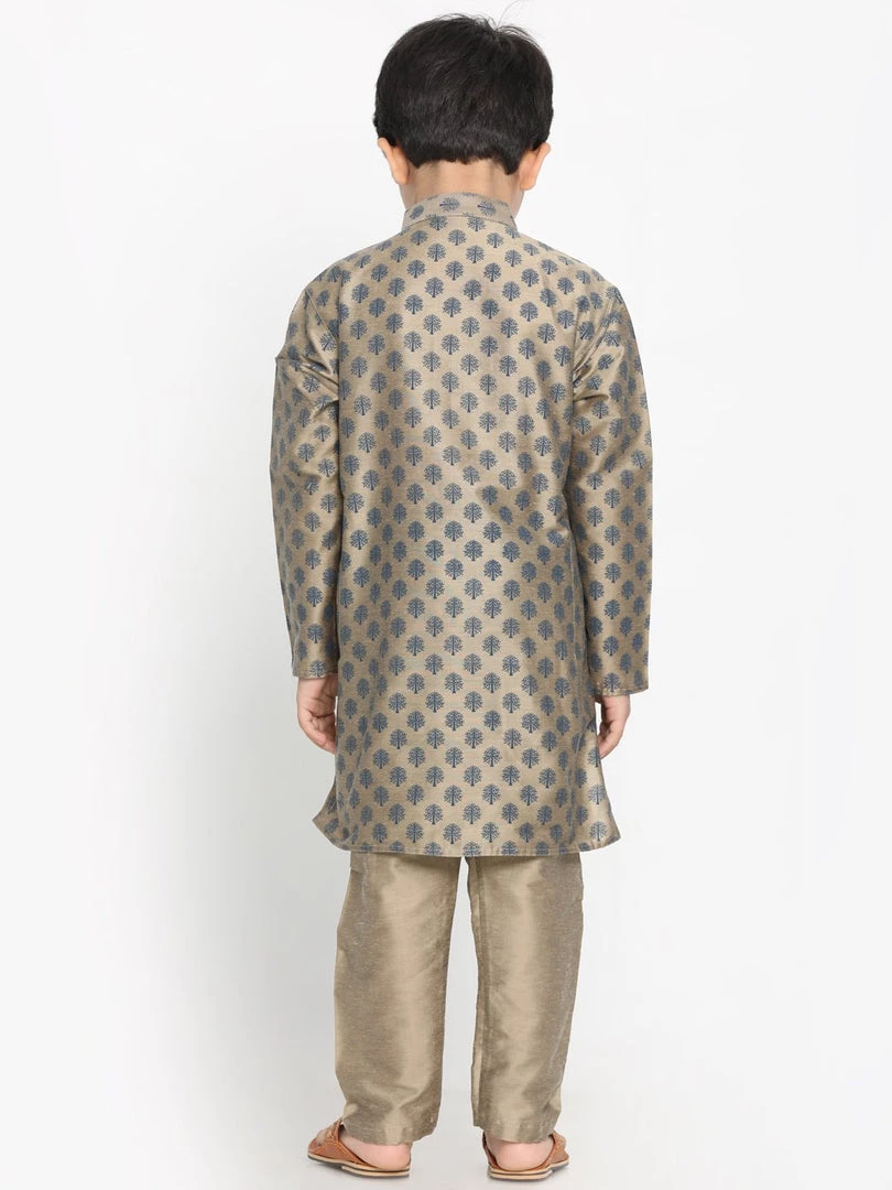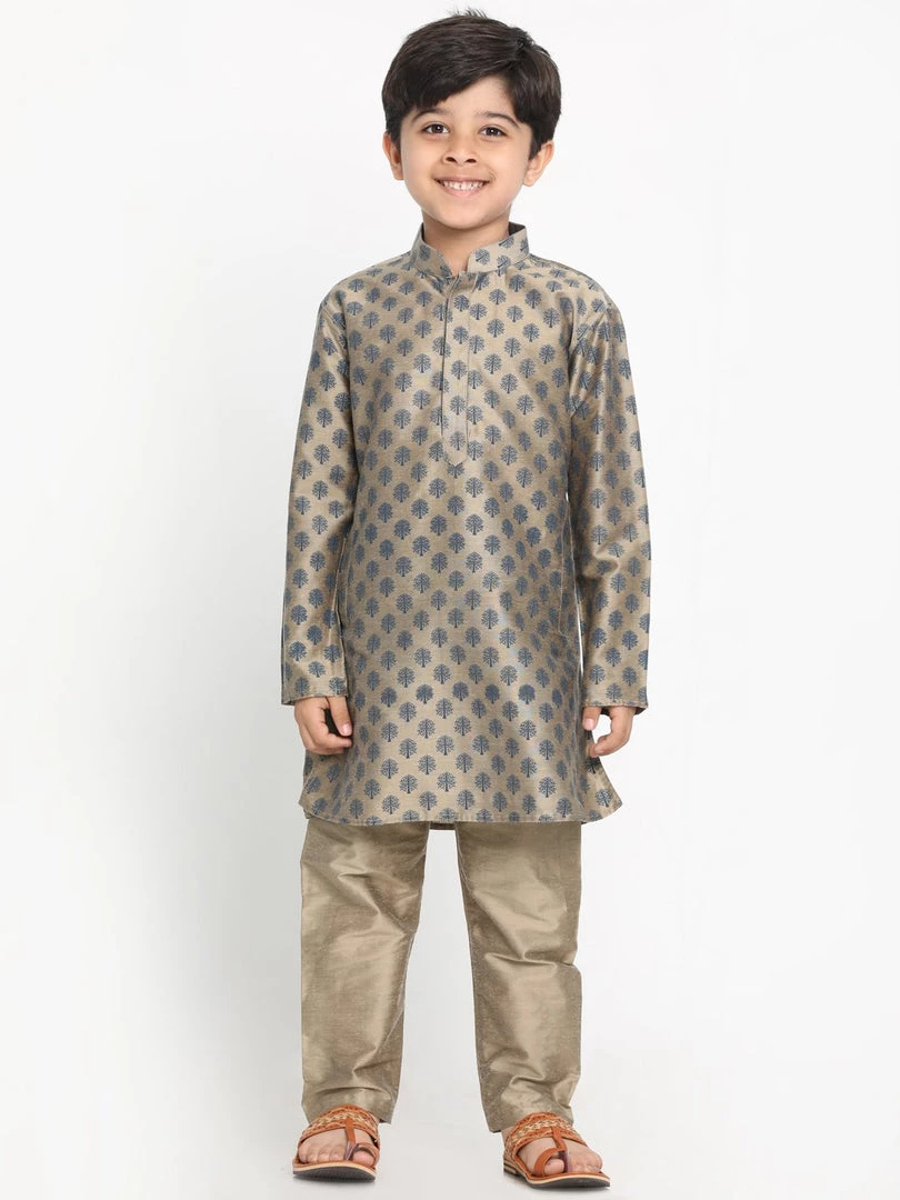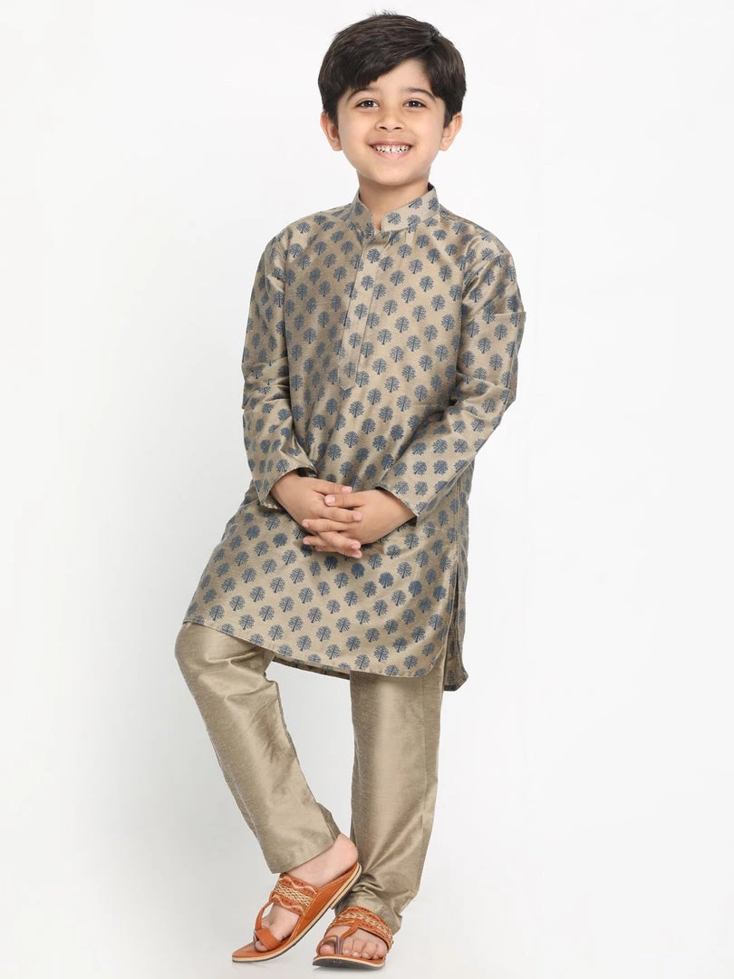 Chiku and grey color straight knee length printed kurta, has a mandarin collar, long sleeves, curved hem, invisible placket, two side pocket, side slits