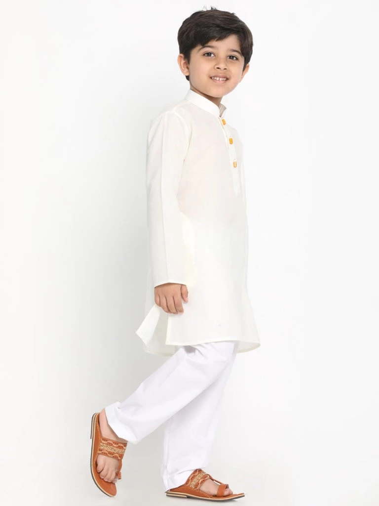 Featuring traditional design with modern style, this cream kurta set is a comfortable treat for any occasion