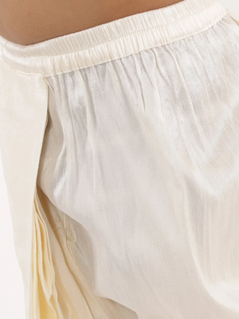 Cream solid ready to wear mid-rise dhoti with pleats, has elasticated waistband and drawstring closure
