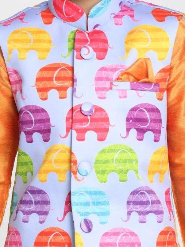 Adorn your boy with this jacket by JBN Creation for a perfect classy & trendy look. Pair it with a juti or a mojari and look apart on special occasions.