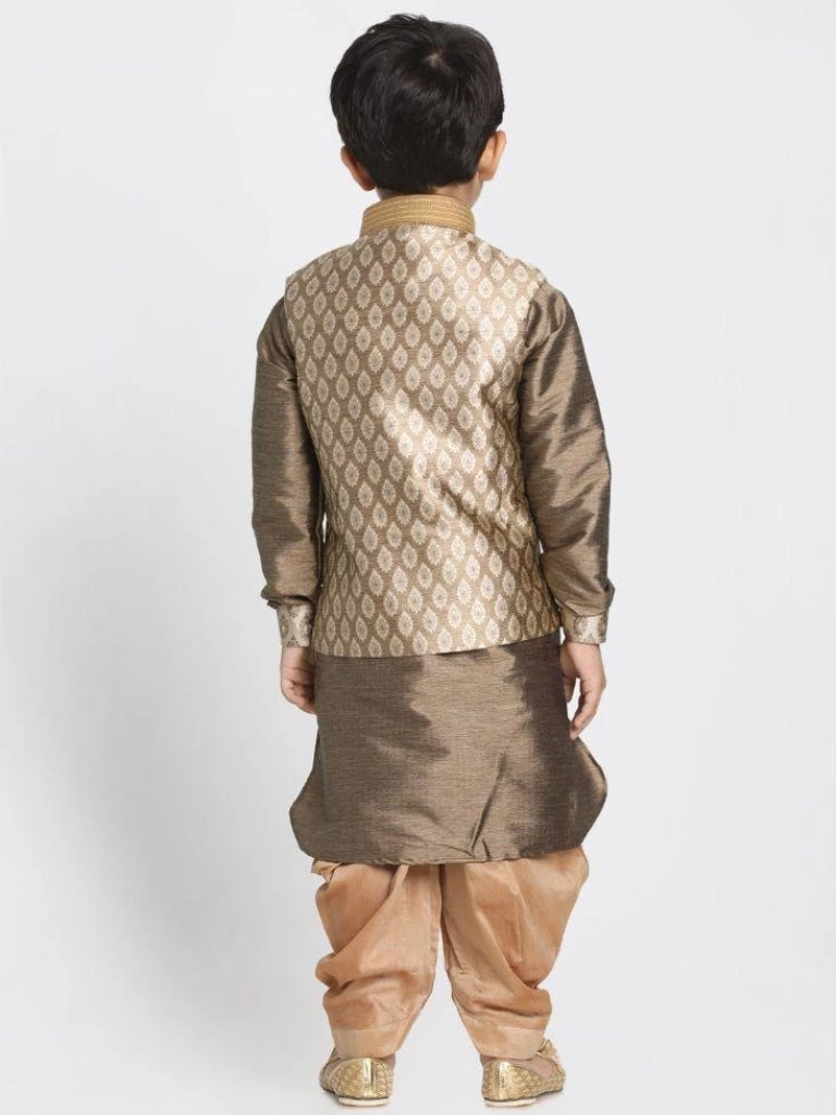Bronze-Coloured and beige self-design kurta with dhoti pants and nehru jacket