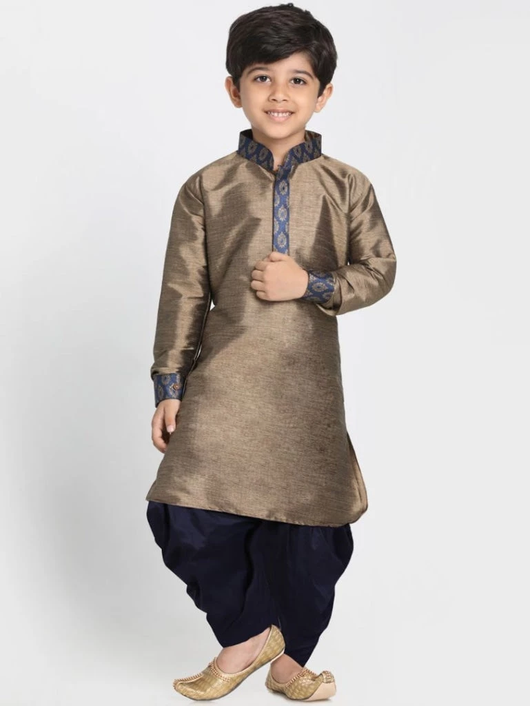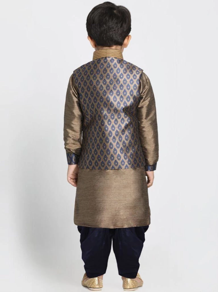 Copper-Toned and navy blue solid kurta, dhoti pant and jacket