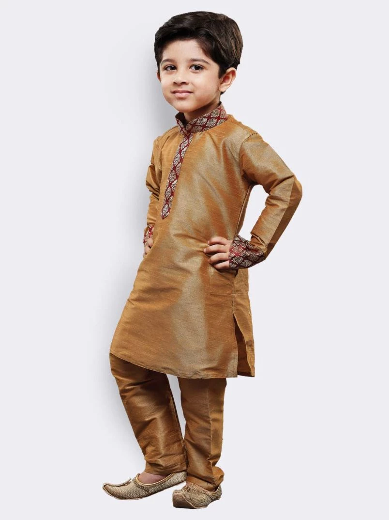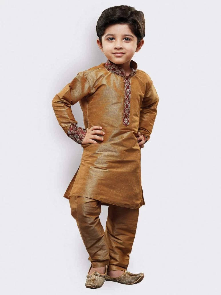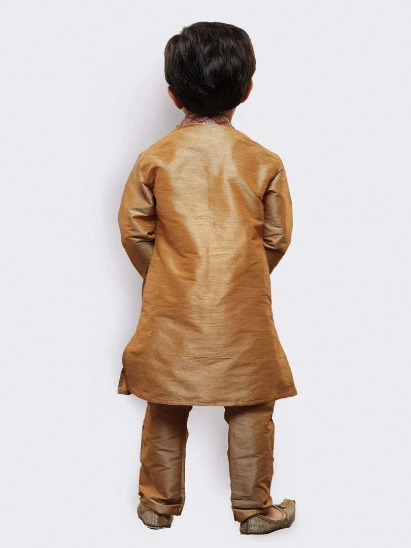 Show off your little boy’s unique personal style in this gold kurta set from JBN Creation