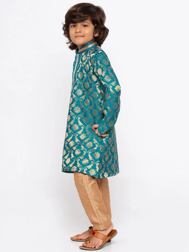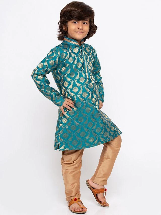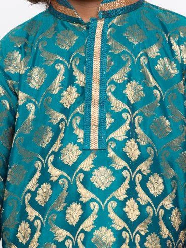 Green and gold-toned woven kurta with pyjama