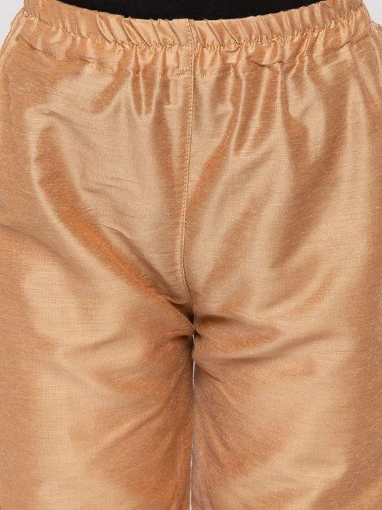 Gold-coloured solid pyjama, has elasticated waistband, slip-on closure