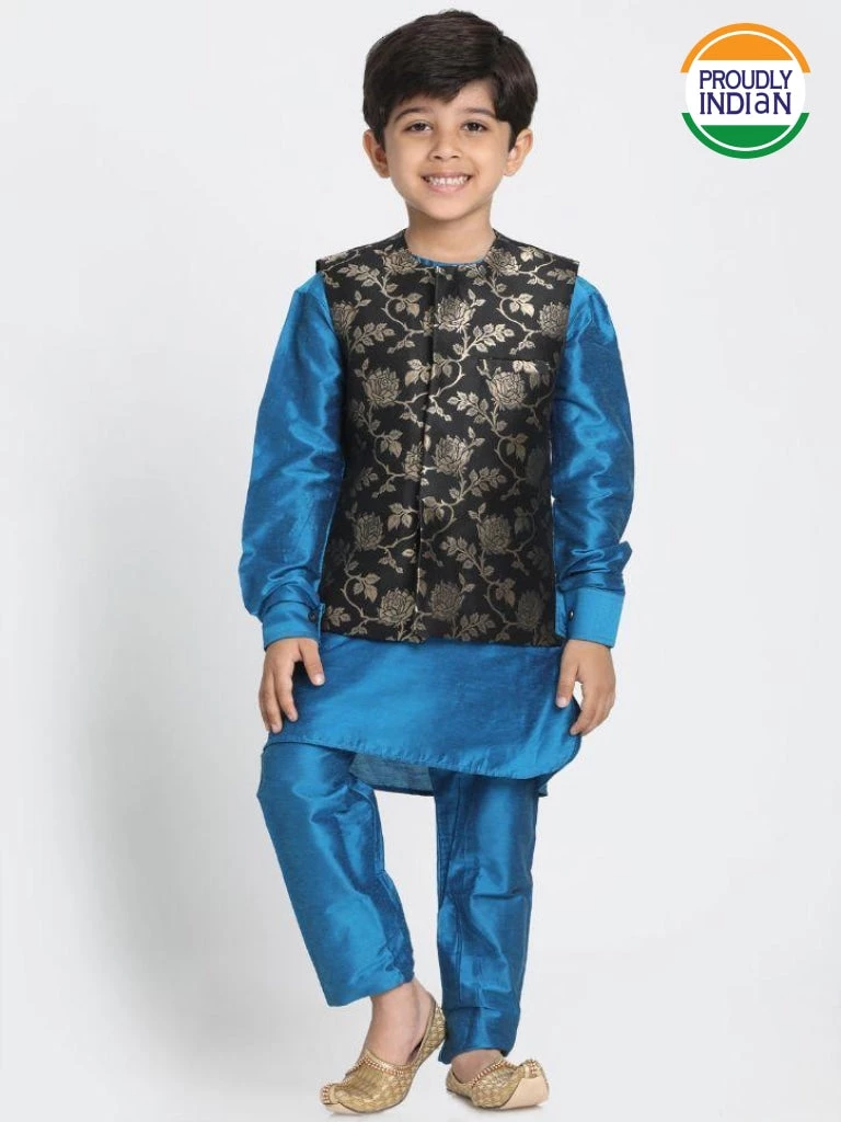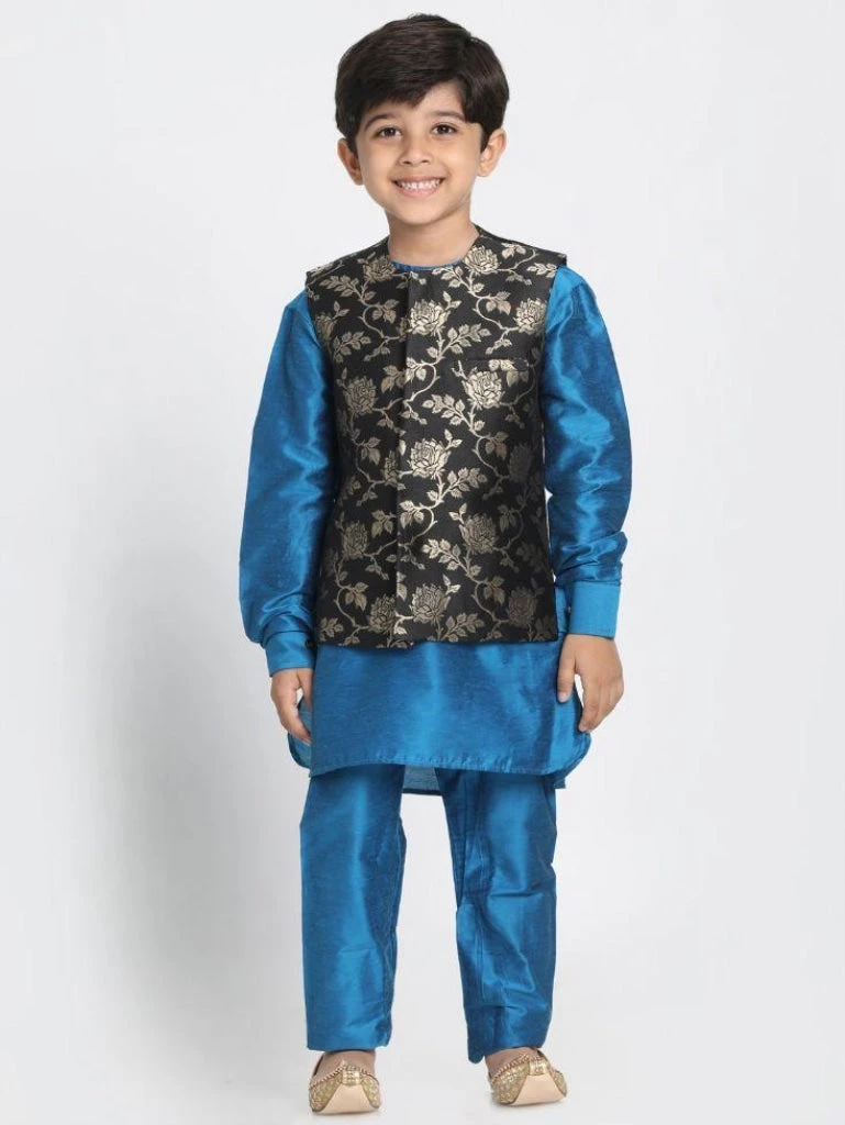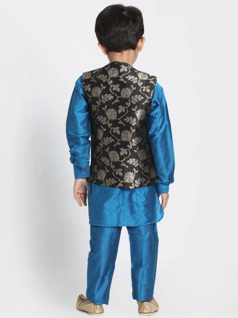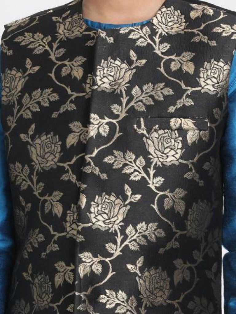 Black and blue kurta, Nehru jacket and pyjama set