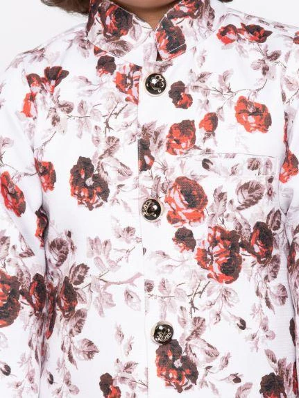 Multicolored-base-white Digitally Printed Kurta, straight Hip-length, full sleeves, Straight hem, side slits, have a mandarin collar.Â