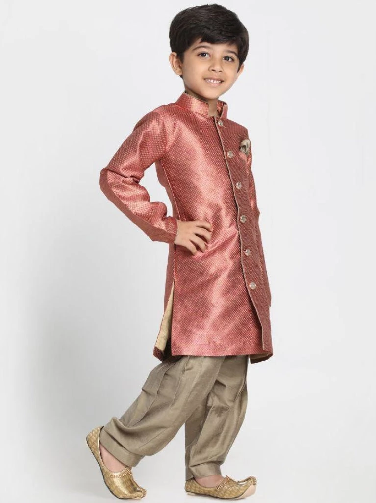 Maroon and camel brown sherwani set