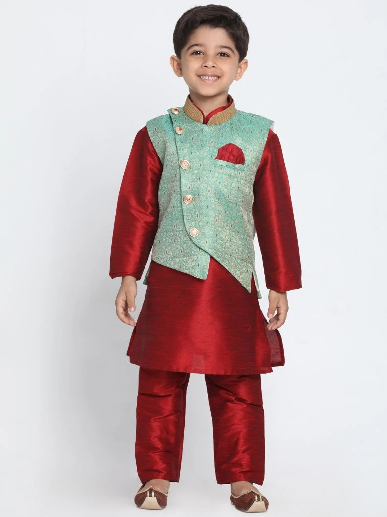 Let your little guy gain due attention with this kurta set. Help him style a good hairstyle to complete a well-groomed look.