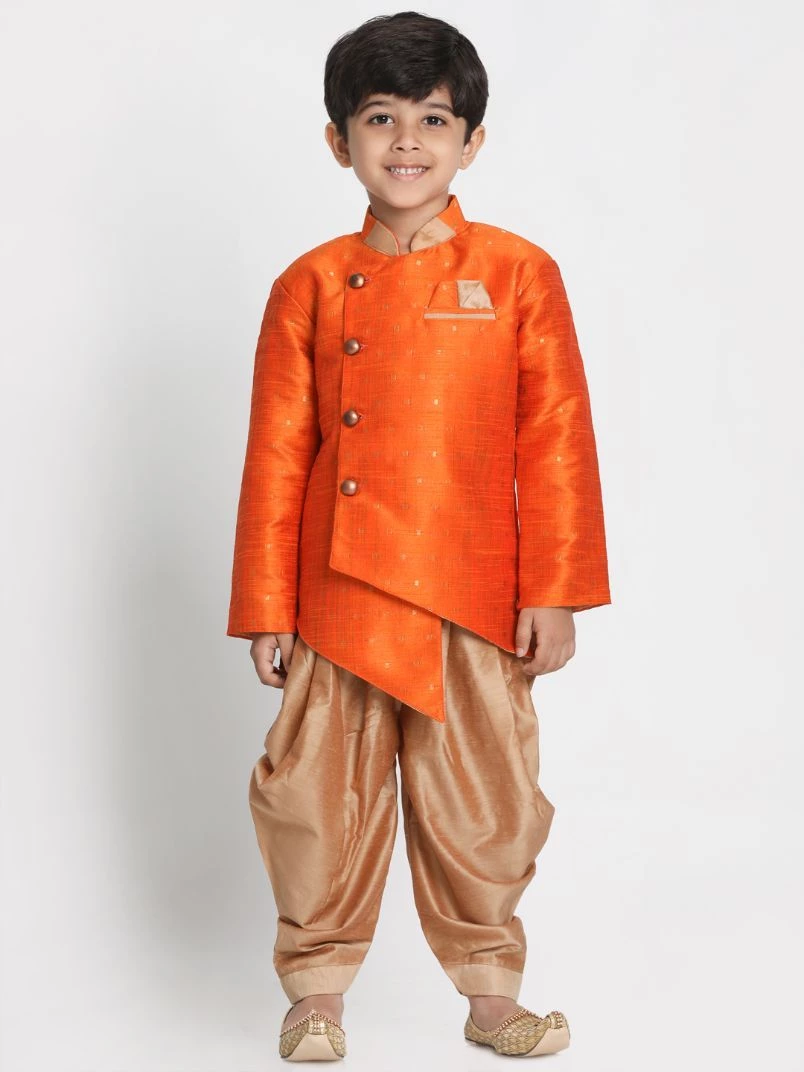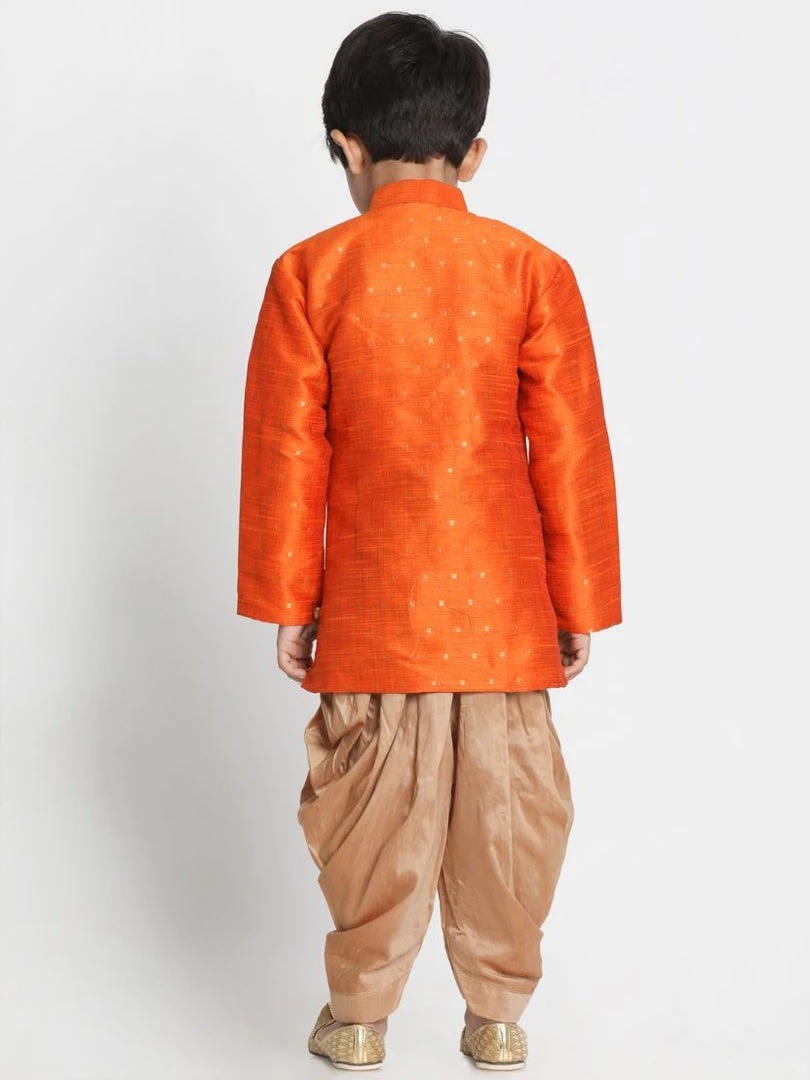 Orange and gold-toned kurta & dhoti pant set