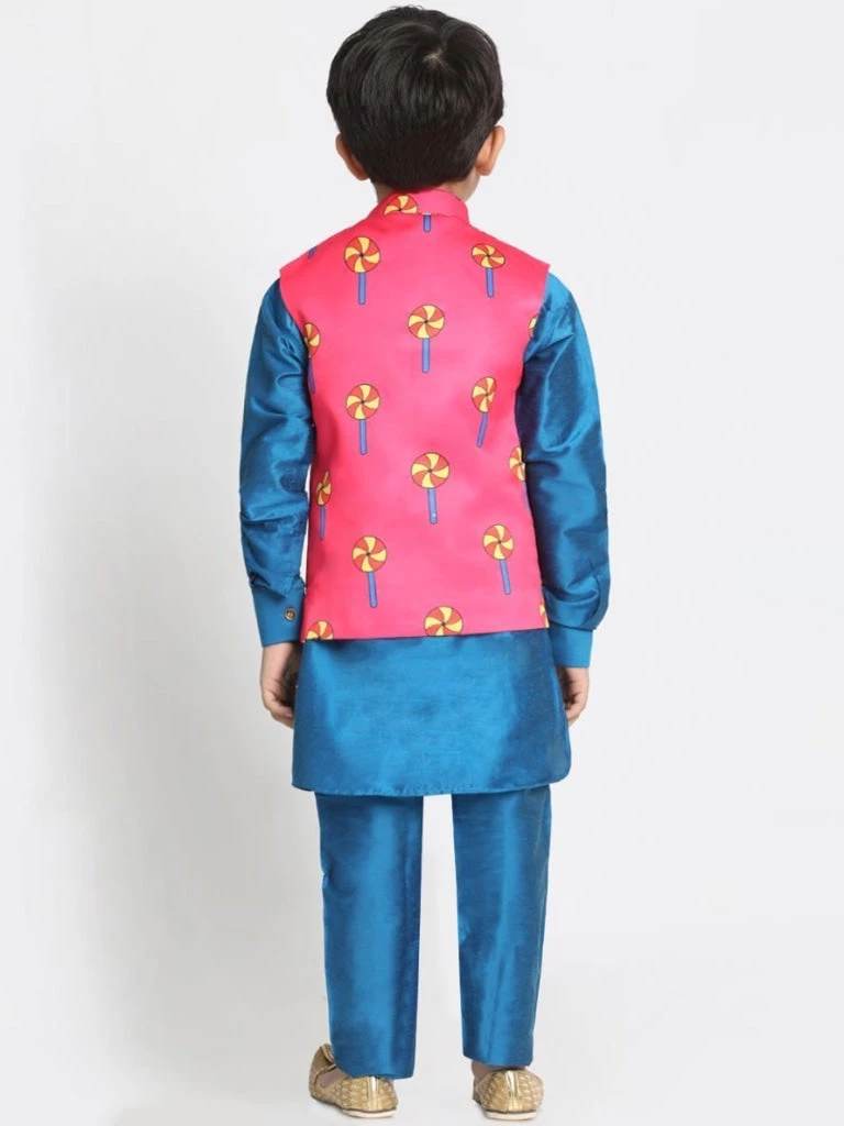 Adorn your boy with this jacket by JBN Creation for a perfect classy & trendy look. Pair it with a juti or a mojari and look apart on special occasions.