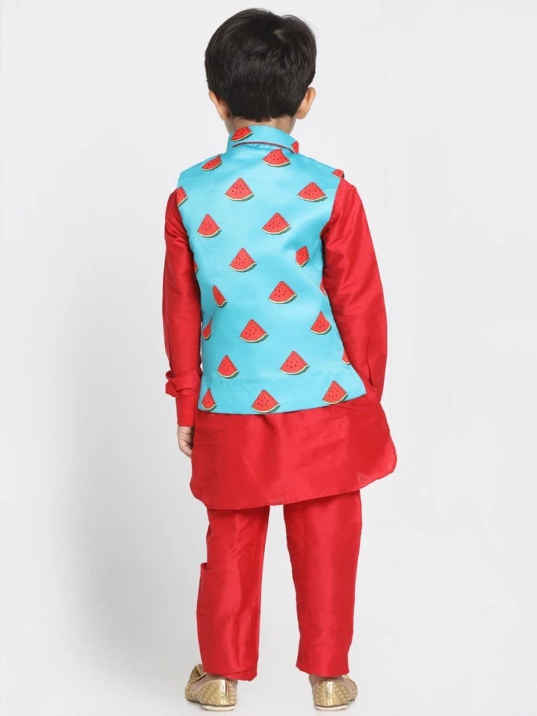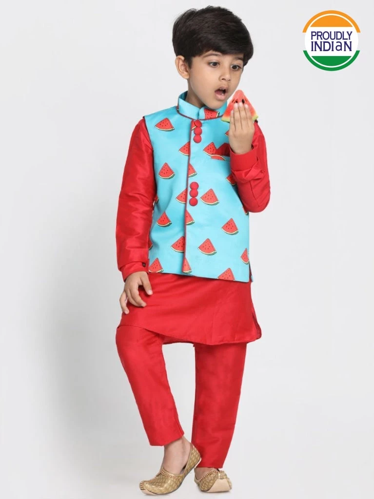 Adorn your boy with this jacket by JBN Creation for a perfect classy & trendy look. Pair it with a juti or a mojari and look apart on special occasions.