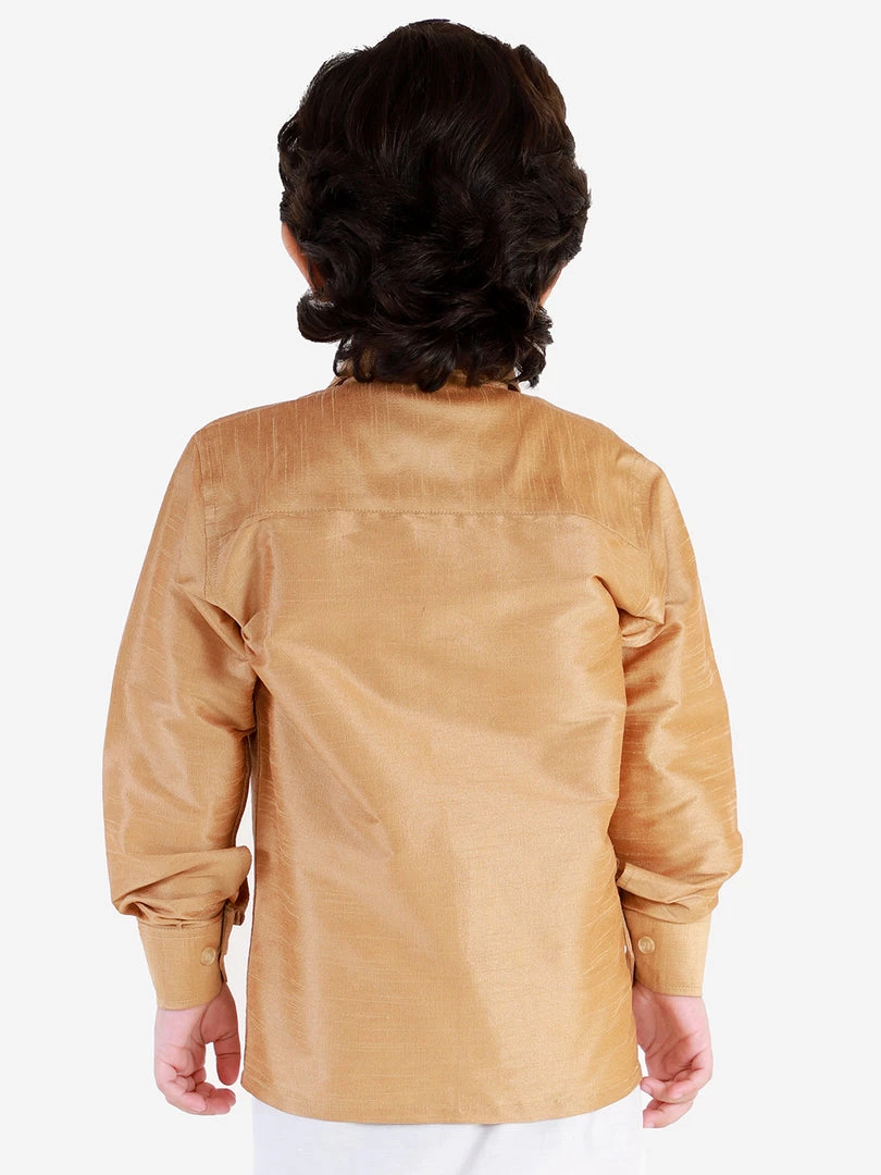 Rose gold solid casual shirt, has a shirt collar, long sleeves with cuff, full front button placket, curved hem, and one patch pocket