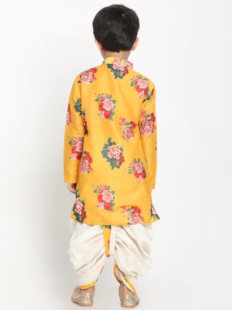 Showcase your little boy’s unique personal style in this yellow kurta set.