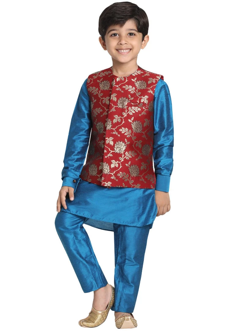 Adorn your boy with this jacket by JBN Creation for a perfect classy & trendy look. Pair it with a juti or a mojari and look apart on special occasions.