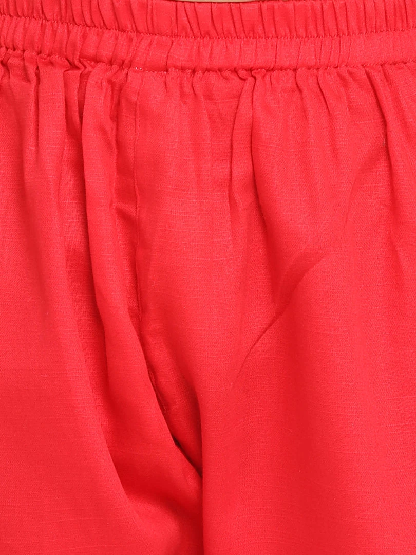 Red solid pyjama, has elasticated waistband, slip-on closure