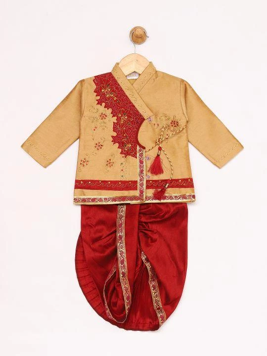 Rose Gold and maroon embroidered angrakha Kurta & Dhoti pants