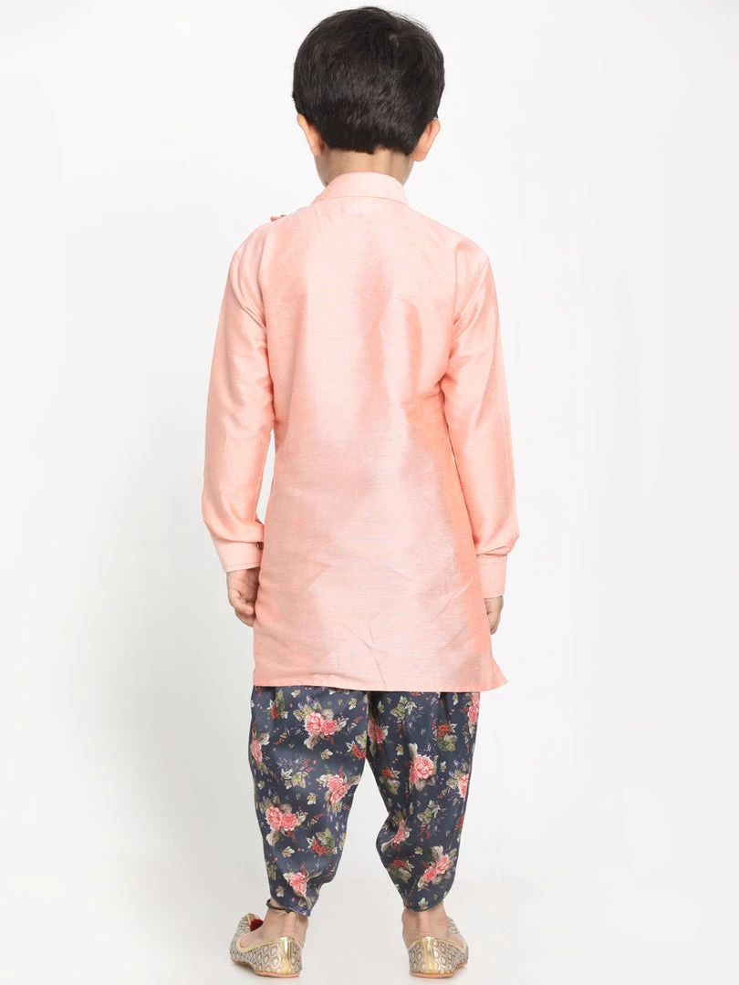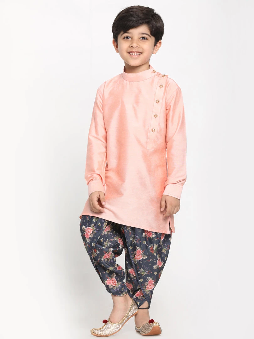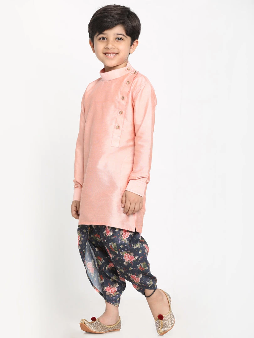 Showcase your little boy’s unique personal style in this pink kurta set.