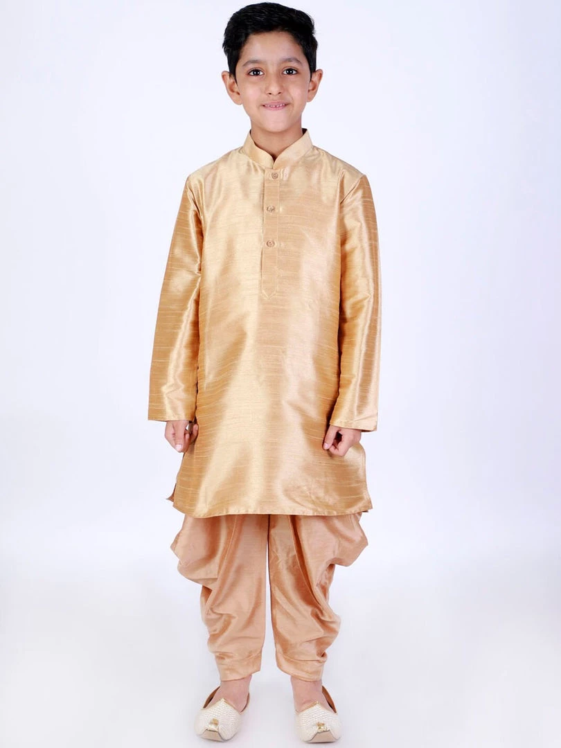 Let your kids have a complete traditional look wearing this dhoti pants from VASTRAMAY . Team it up with a floral printed or embroidered Naari kurta.