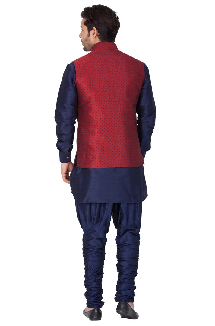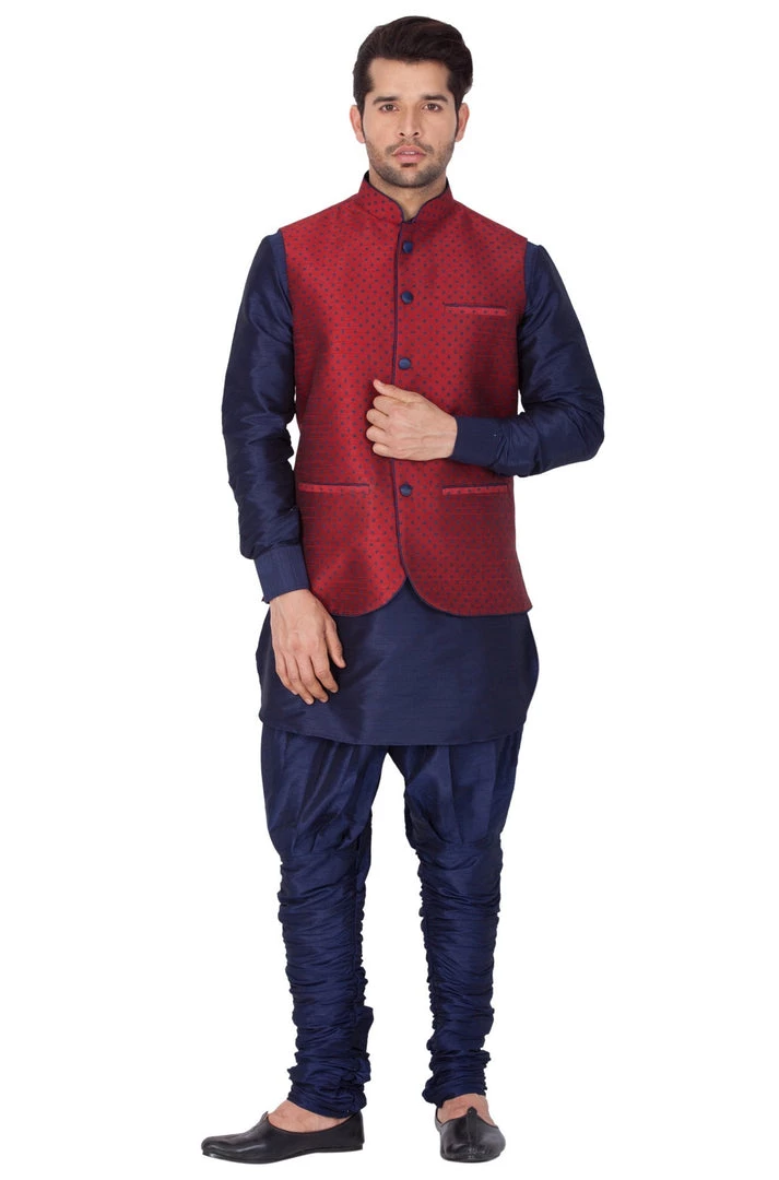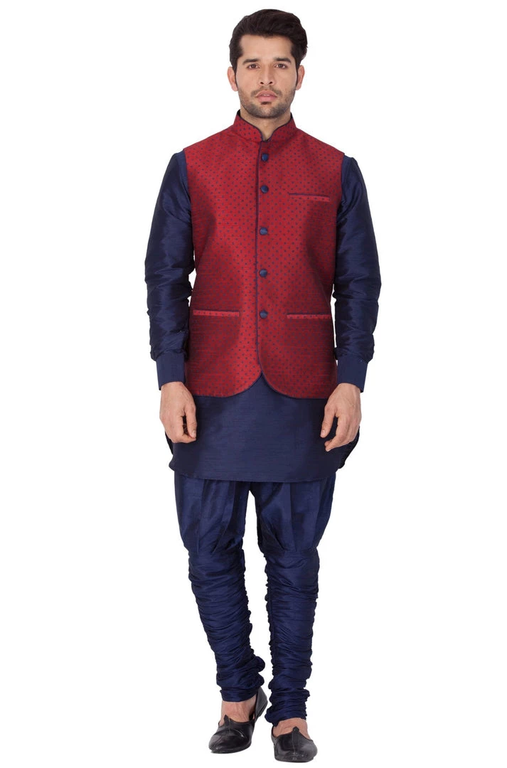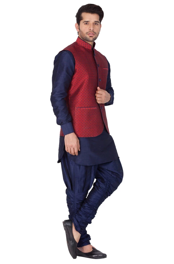 This elegant and trendy Kurta set from VASTRAMAY will be a great add-on to your ethnic collection. Team it with a pair of semiformal shoes or Kolhapuris to get the complete look.