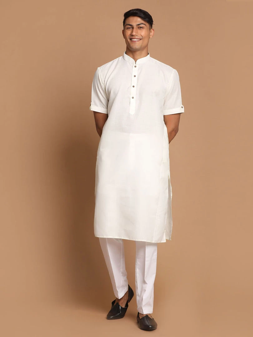 Cream color solid kurta