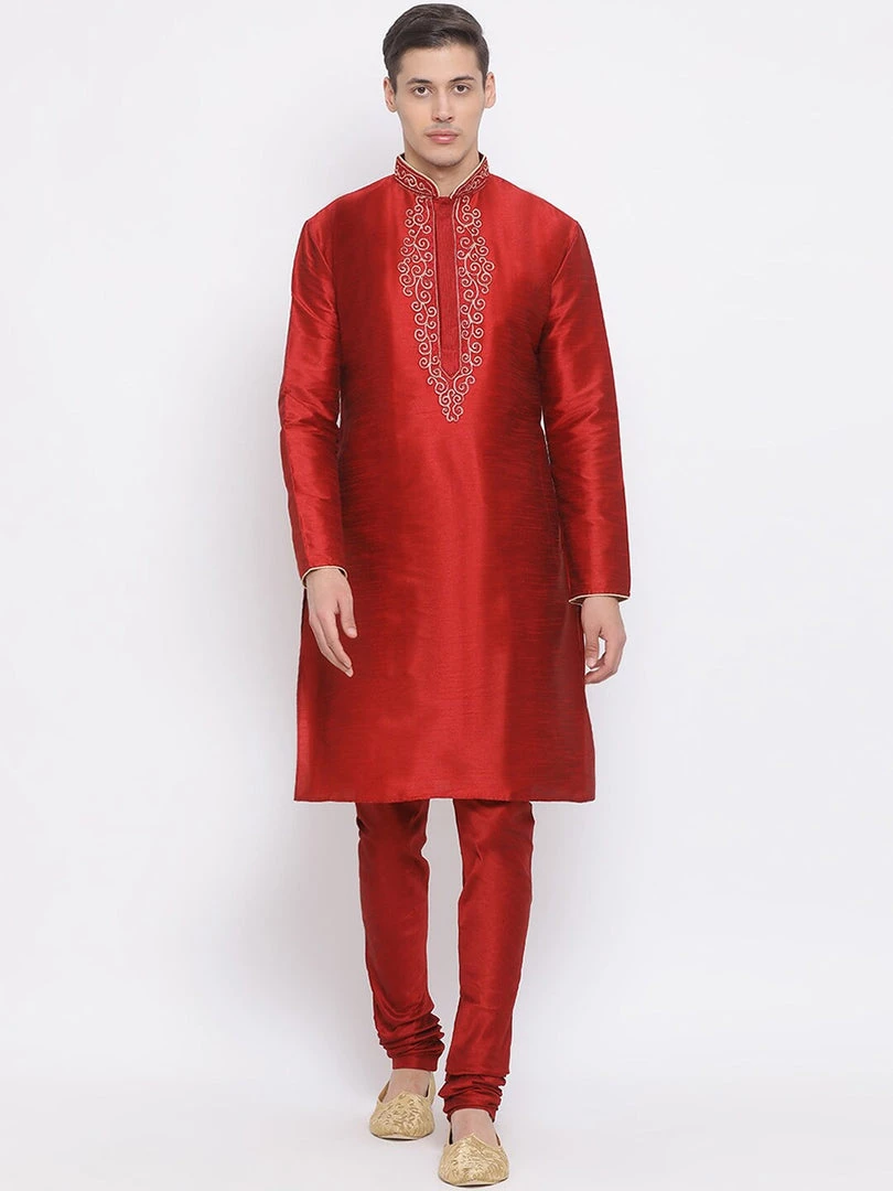 Sport this classic kurta set from VASTRAMAY this season. Dress this piece up with your favorite accessories and head out to any family event in style.