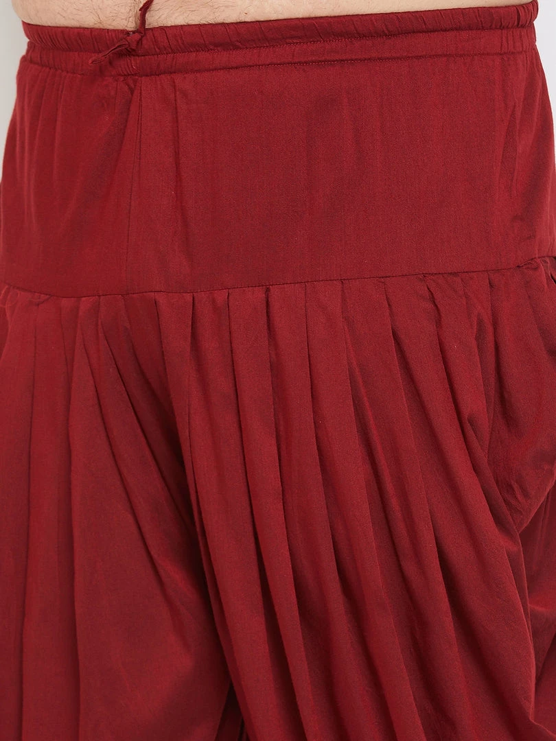 Maroon solid dhoti pant, has elasticated waistband and drawstring closure