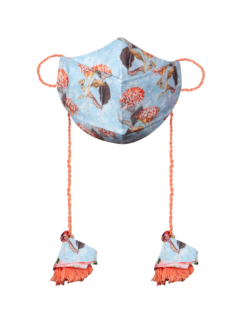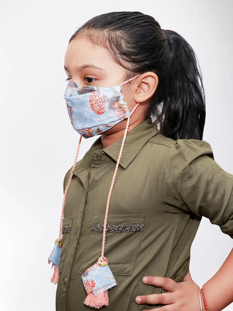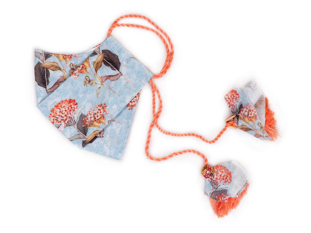 Rakhi Vastramay Floral Printed Reusable Anti-Pollution, Cotton Dori Ear Loop And Choti Plus Tassels Style Wellness Mask In Blue With A Natural Fibre Potli Bag – Pack Of 1