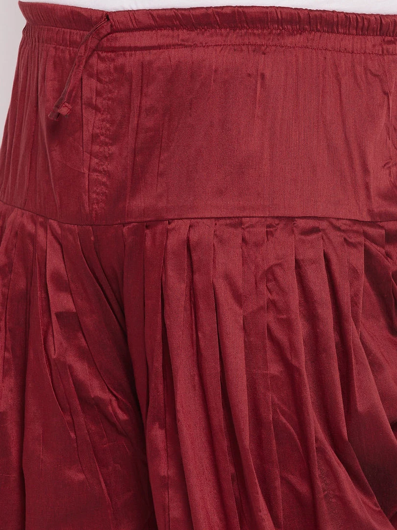 Maroon solid dhoti pant with pleats forming cowl on sides, has an elasticated waistband with draw-string closure