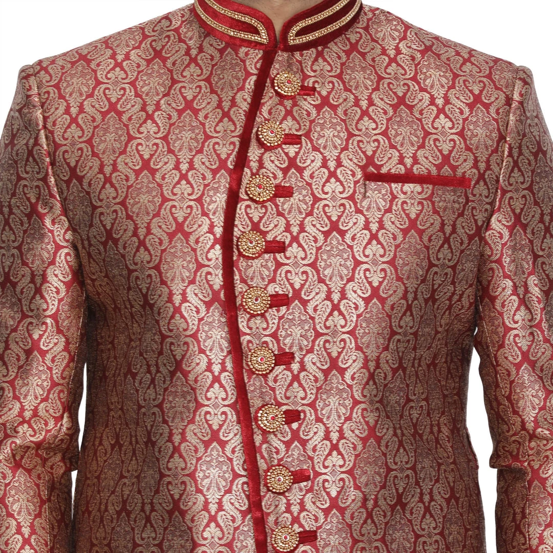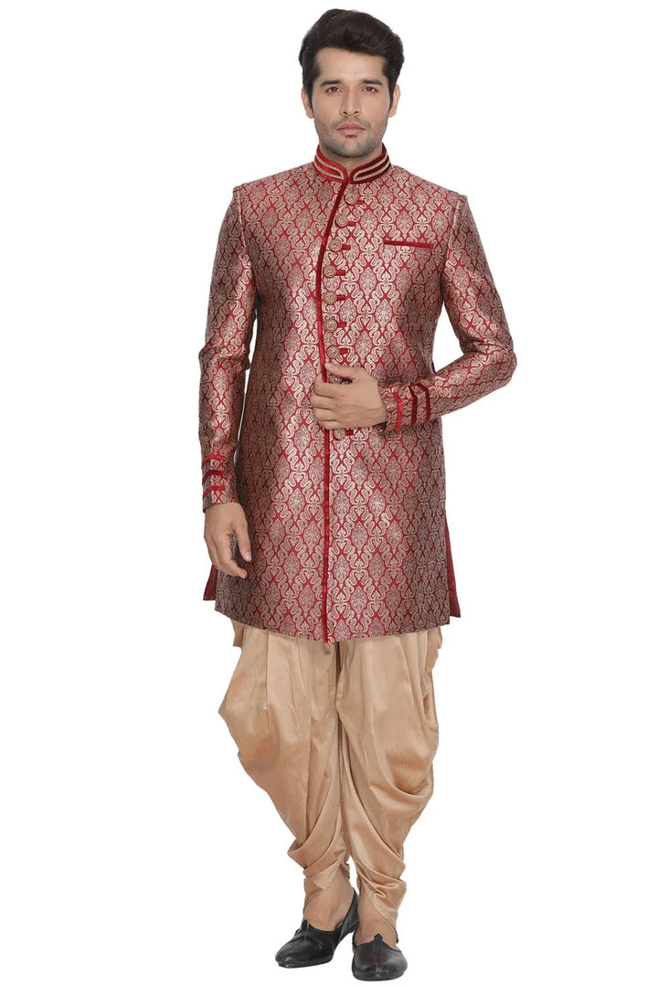 Sherwani/Indowestern VASTRAMAY Men’s Maroon Silk Blend Sherwani-Only Top
