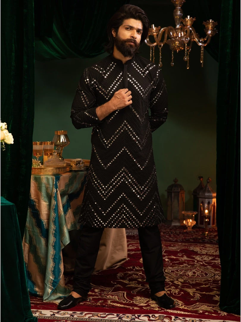 Black embroidered Kurta with Pyjamas