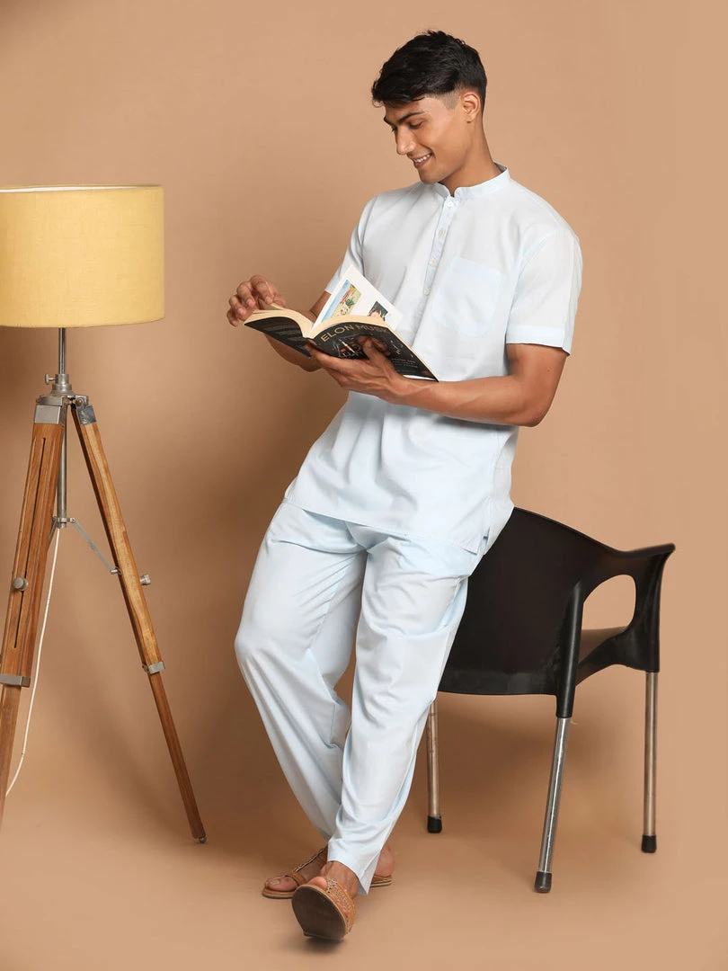Aqua Blue color work from home collection cotton pyjama set.