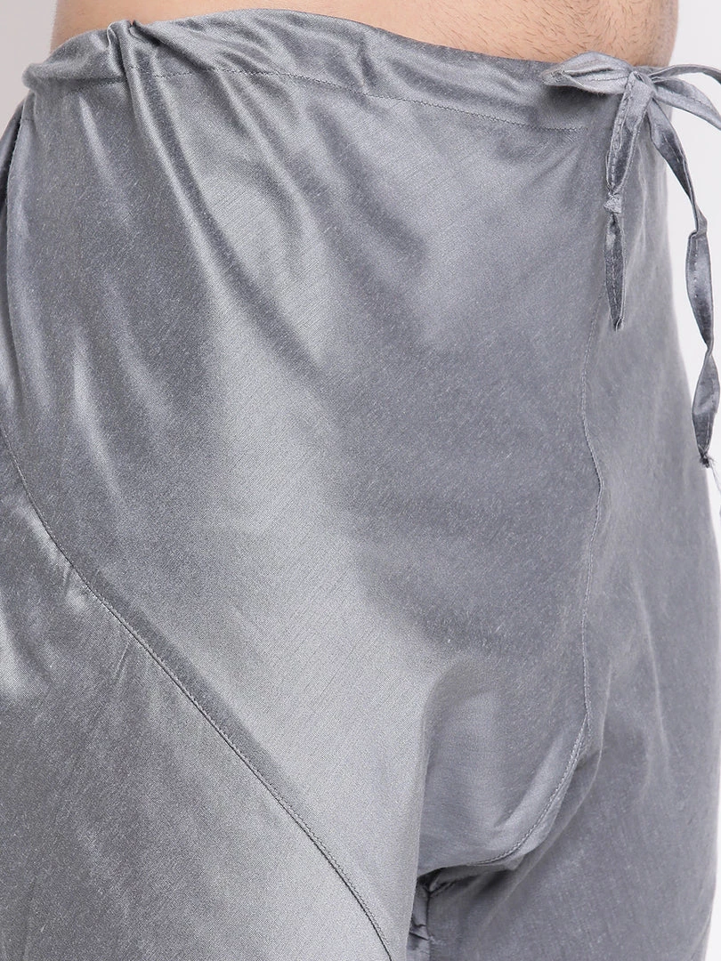 Grey solid pajama, has an elasticated waistband, drawstring closure   Â
