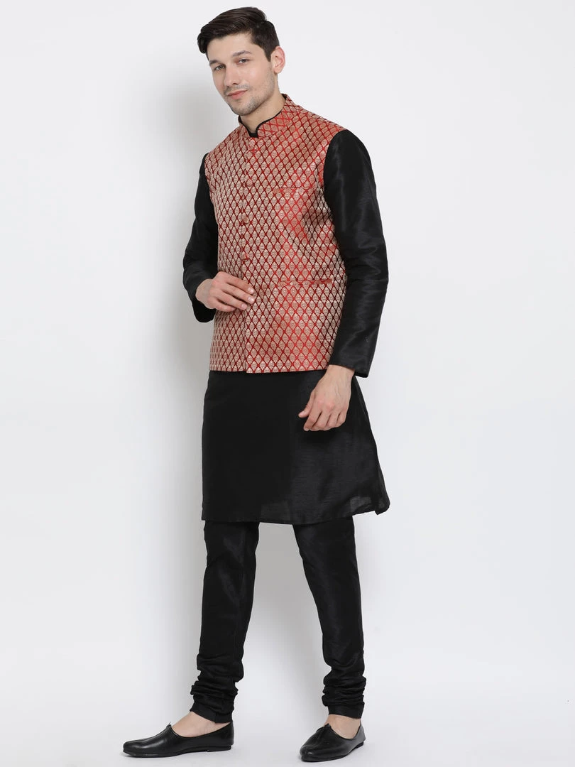 Sport this classic kurta jacket set from VASTRAMAY this season. Dress this piece up with your favorite accessories and head out to any family event in style.